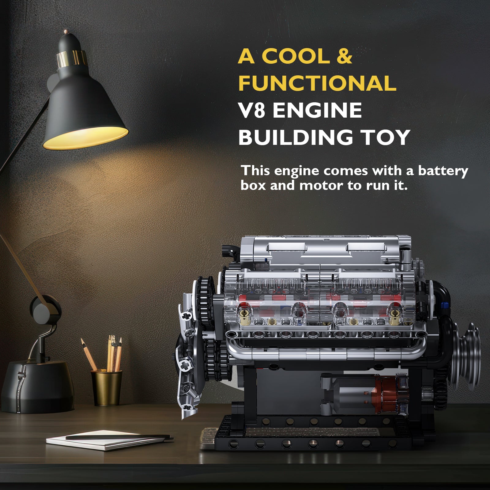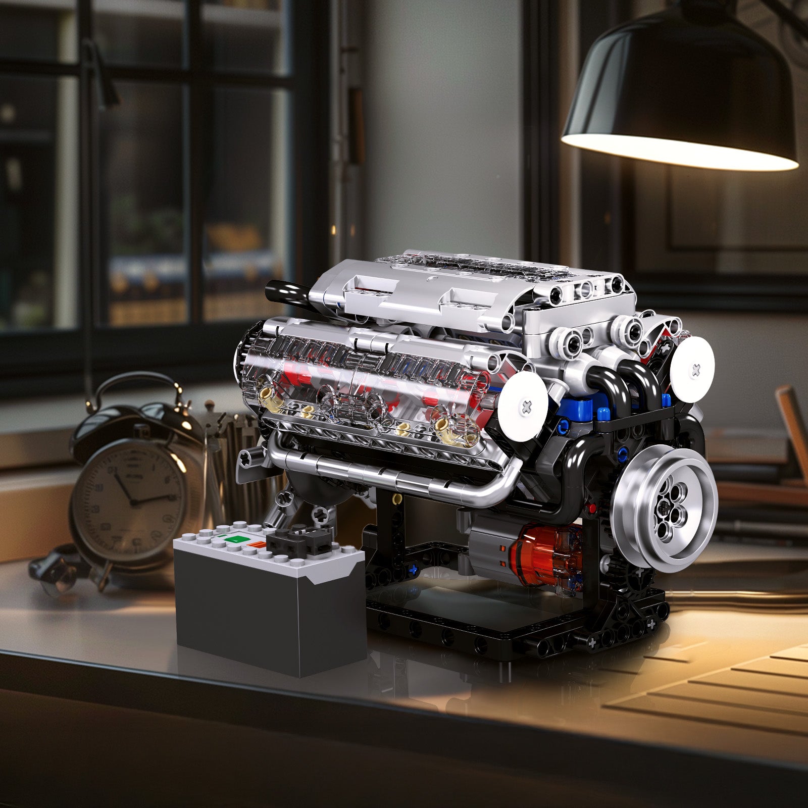 Includes an L motor and rechargeable battery box, enabling electric drive and replication of real 1:1 dynamic engine principles